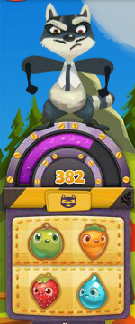 There are special levels where you challenge Rancid and you have to defeat him by collecting Cropsies. Unlike in normal levels, there is no given number for each cropsie on the list so that any will do. (For example, in the picture, you could collect 371 water droplets and 11 strawberries, or 100 apples, 100 carrots, 100 strawberries, and 82 water droplets.) After reaching the goal the level will be finished instantly without Hero Mode. The number of remaining moves will determine your score. On mobile devices you will see Rancid's health in percent. On the PC you have a meter which shows you the number of cropsies needed.